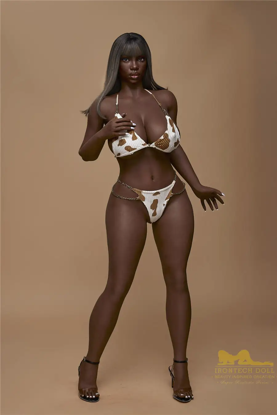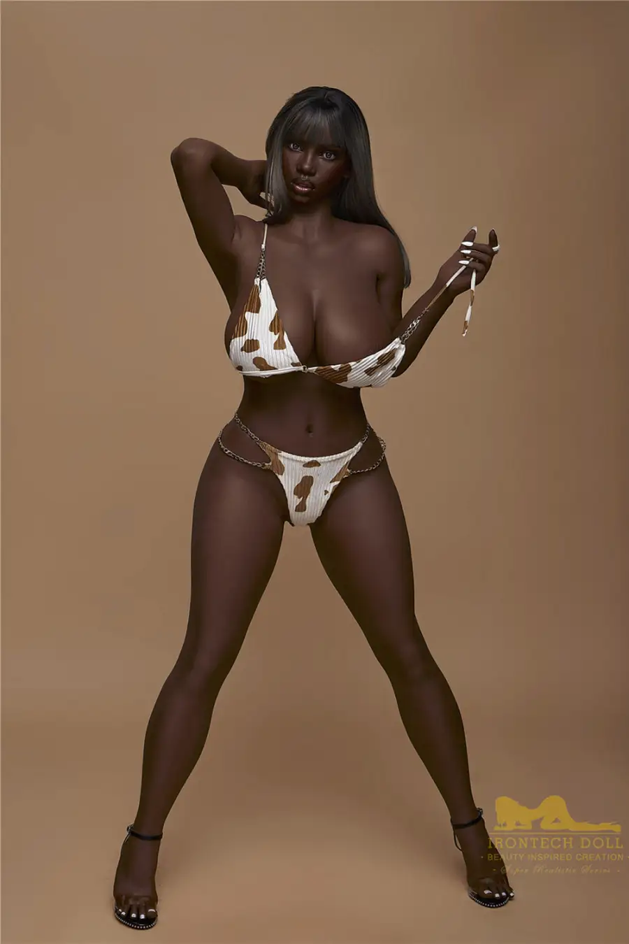 1. Seeney is the representative of the black BBW sex doll, she has shiny black skin color, implanted brown hair, full silicone body, she allows you to customize all her body parts to become your ideal girlfriend.