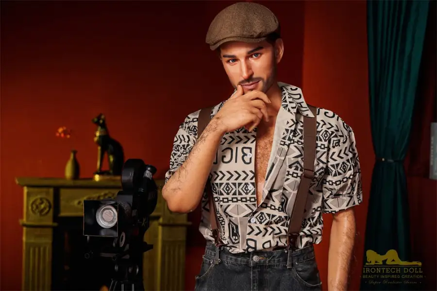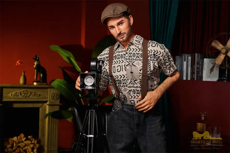 3. George wears a perfect shirt paired with overalls, like a handsome painter. You can have a handsome and realistic sex doll to keep you company!
