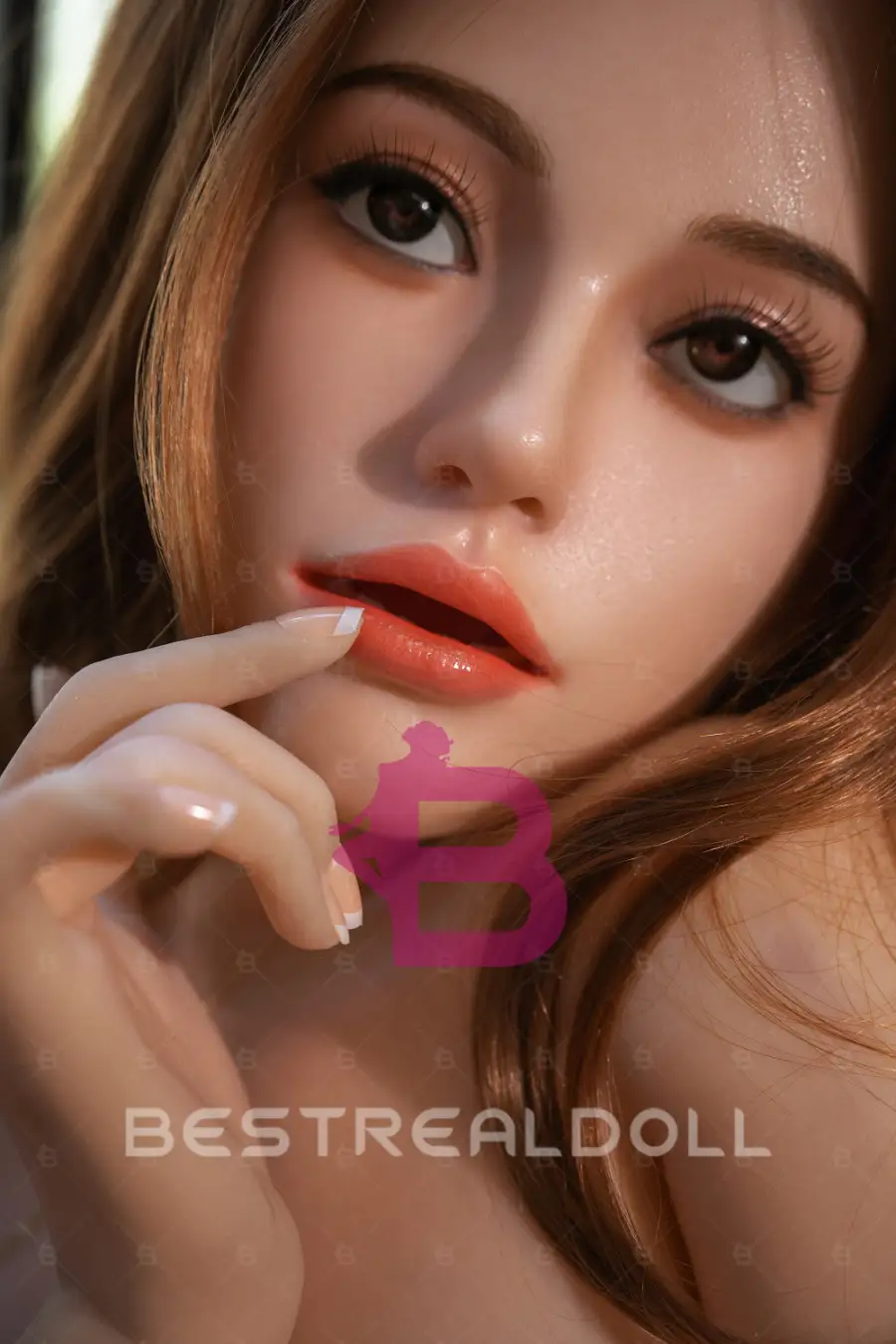 1. Jada is a 164cm silicone head blowjob sex doll. She has beautiful implanted brown curly hair, an elegant and realistic face, soft medium boobs, and a round butt, she looks so sexy and attractive, you might fall in love with her at first sight.