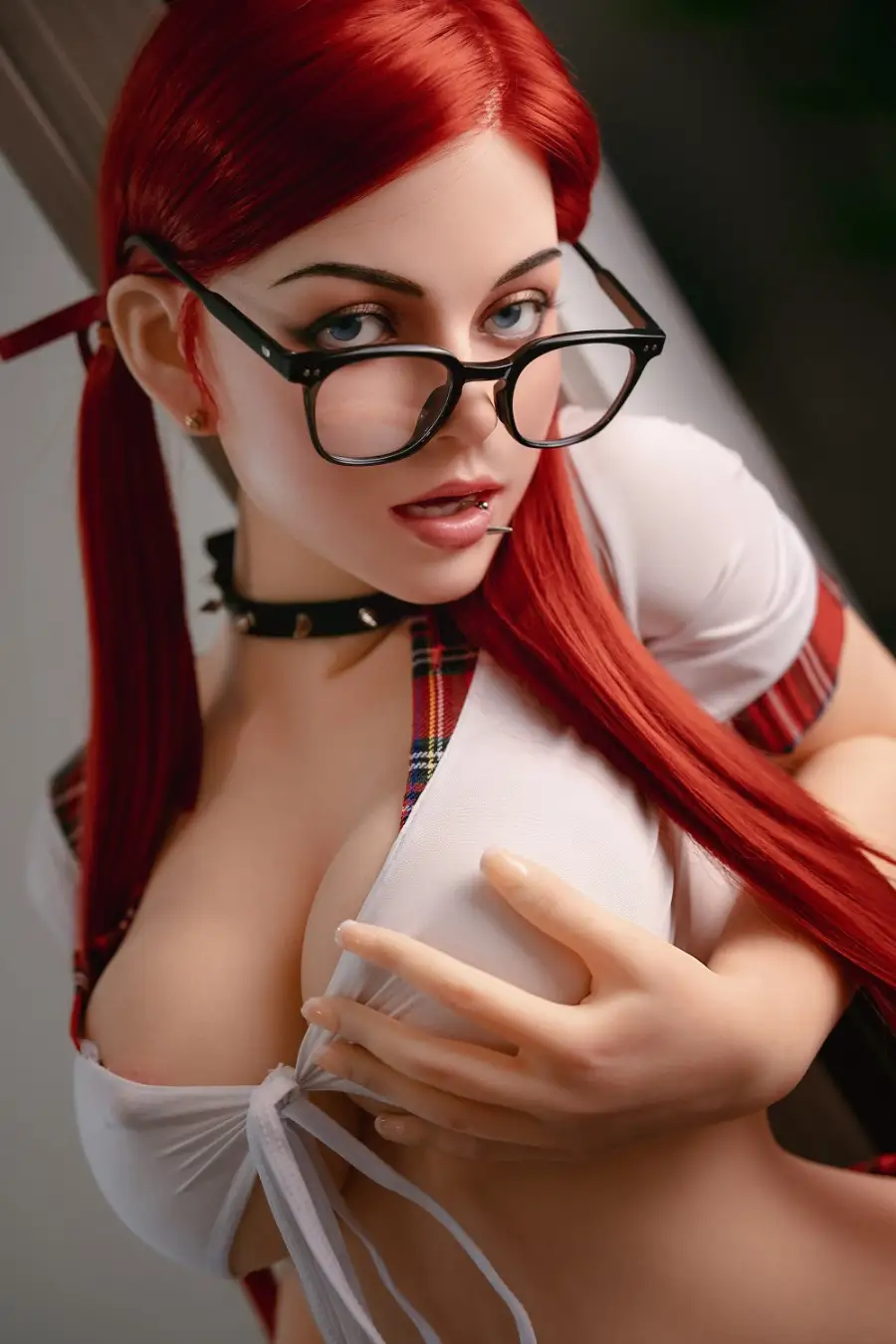 1. Janice is a 160cm BBW sex doll with long red hair. She has seductive grey eyes, sexy juicy pink lips with cool lip studs, she likes to wear skirt suit to show her perfect body curves.