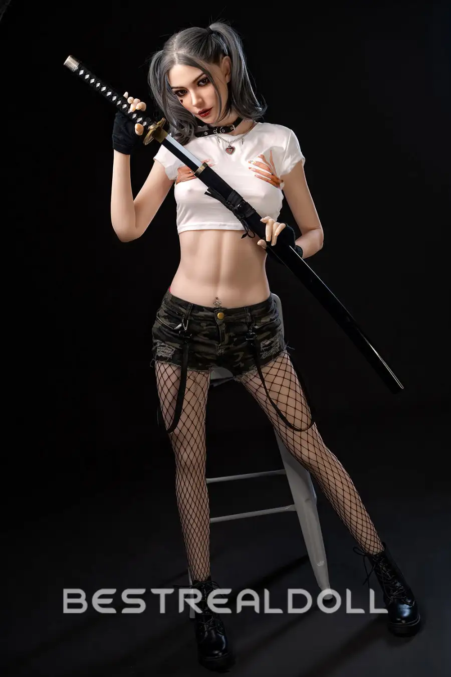1. Makayla comes with a 173cm tall, elegant face with delicate makeup, implanted grey hair, and a red heart in the corner of the eye making her look like the movie character "Harley Quinn".