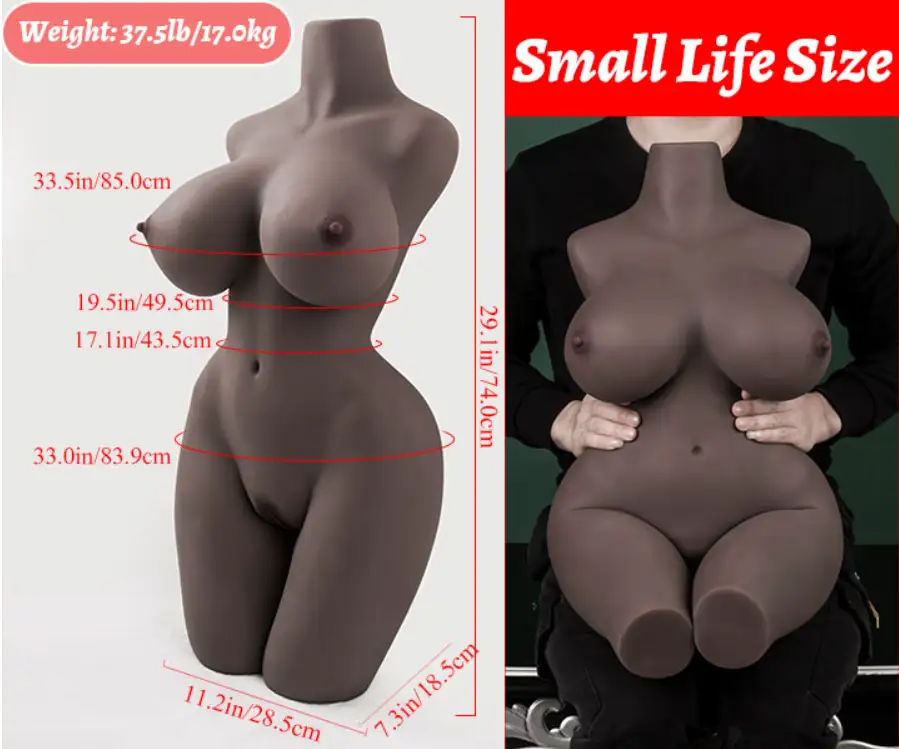 LoveDoll Realistic Love Doll EU Stock - 74cm/29.1in Female Torso Sex Doll Half Body Love Doll Torso TPE Black Torso Doll
