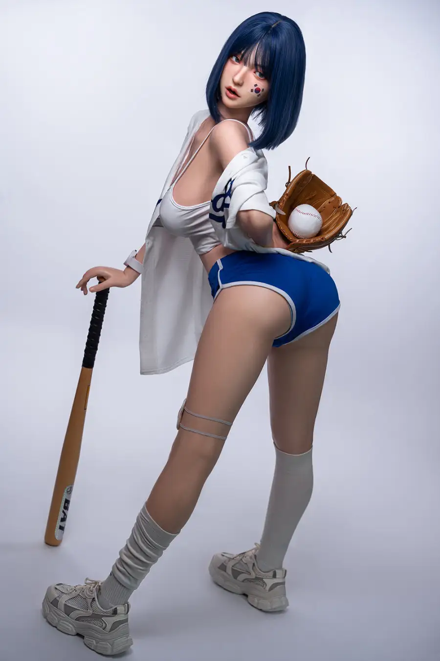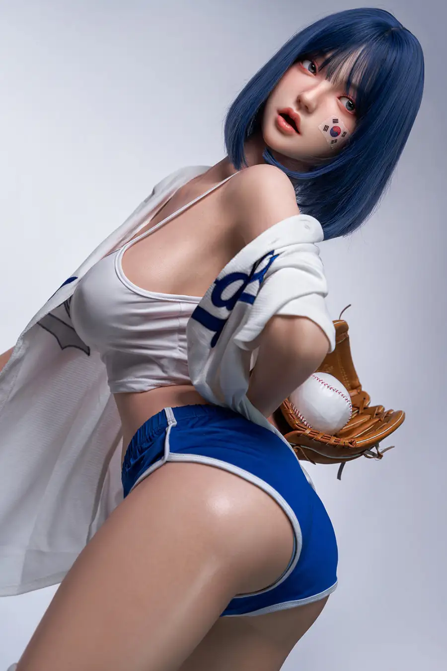 1. Felicia features with 158cm, bright light blue eyes, cute small pink lips, and her short blue hair matches well with her exquisite makeup. The medium boobs and firm ass make her more sexy and attractive.