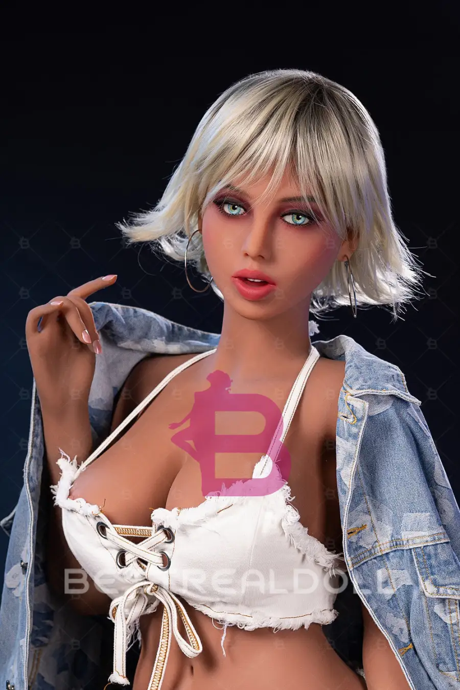 1. Britney is a 163cm sexy love doll with short grey hair. With seductive light blue eyes, sexy juicy pink lips, medium boobs, round ass and long legs, this beautiful woman becomes very popular with customers.